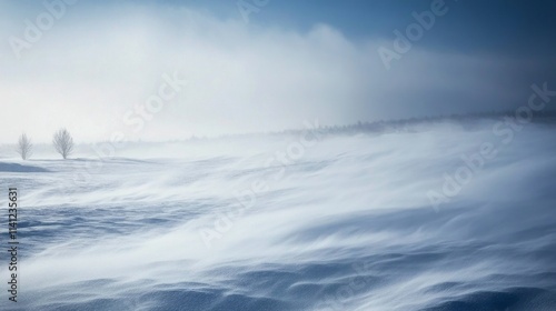 snow, blizzard, winter, wind, cold, ice, landscape, field, tree, sky, nature, weather, glacé, white, blue, storm, drift, blowing, scenic, season, environment, arctic, chill, frost, flurry, powder, dune, horizon, huge, serene, desolate, calmness, atmosphere, air, light, day, cloud, wintery, snowy, frigid