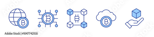 blockchain, cryptocurrency, cloud, world. icon vector illustration. Line Duotone style. Editable stroke