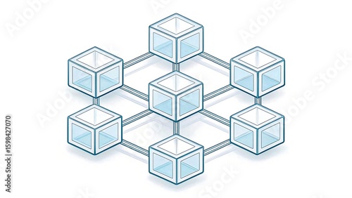 Blockchain data structure illustration with interconnected cubes, technology concept