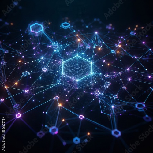 Blockchain Network: Abstract 3D Illustration with Connection Lines