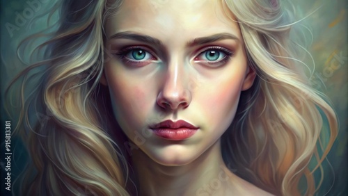 shoulder, magical, mysterious, dreamy, fairy tale, feminine, pose, coiffure, high-coloured, gorgeous, painting, glamour, make-up, fantasy, vibrant, artwork, radiant, contemporary, eye, model, artistic, gallery, elegant, head, enchanting, digital artwork, dress, imaginative, blond, face, long hair, hair, illustration, portrait, woman, art, modern, abstract, digital, style, fashion, creative, green eye, beauty, colours, blonde woman