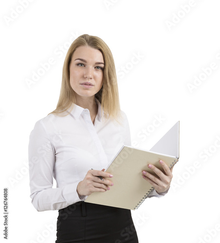young, woman, beautiful, people, attractive, girl, business, businesswoman, hair, work, job, blond, white, isolated, racked, hold, formal, wear, clothes, shirt, blouse, skirt, look, front, view, portrait, architecture, stylish, notebook, secretary, collar, happiness, success, 1, female, suit, cute, modern, face, person, beauty, looking, background, confident, pretty, european, american, finance, adviser, lawyer