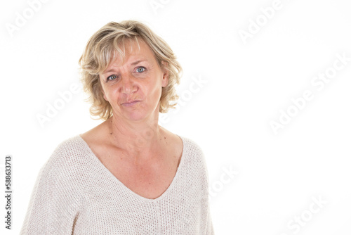 woman, senior, grimace, pensive, blond, grimacing, mature, side, copy, space, white, background, beautiful, posing, wall, blue, eye, casual attire, face, portrait, studio, hair, 60, adult, aged, attractive, blond, caucasian, cute, elderly, expression, female, finger, grandmother, hand, human, lady, look, middle, middle-aged, model, old, older, 1, people, person, pretty, 60s