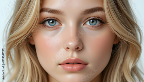 woman, face, looking, closeup, fair, blond, hair, eye, skin, blue, portrait, head, female, young, caucasian, person, human, style, beauty, model, attractive, elegance, shiny, cosmetic, glamour, make-up, healthy, youth, eyelash, youthful, wellness, complexion, care, clean, fresh, posing, studio, fashion, lifestyle