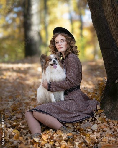 park, nature, curl, autumn, retro, papillon, dog, pet, adult, animal, art, attractive, beauty, book, caucasian, character, concept, costume, cover, creative, design, dress, elegant, fairy tale, fantasy, fashion, female, forest, glamour, graceful, lady, lifestyle, mag, majestic, make-up, maple, model, motion picture, muzzle, mysterious, person, portrait, pretty, romantic, tender, visage, wild