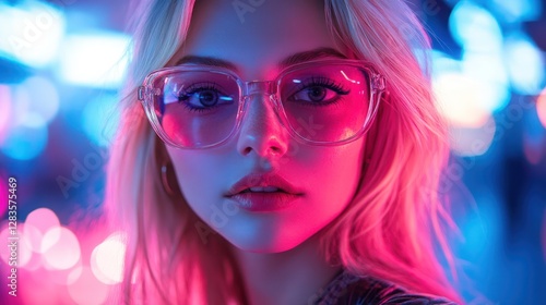 woman, blond, neon, city, portrait, goggles, fashion, night, light, model, girl, beauty, female, style, glamour, trendy, attractive, stylish, modern, elegant, pretty, cool, hipster, vibrant, bright, colourful, bokeh, background, street, urban, nightlife, scene, image, photo, picture, graphic, design, artwork, digital, art, advertising, marketing, website, poster, mag, editorial