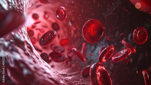 Blood particles and cells in blood vessels.