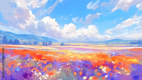 blooming, flower, field, vibrant, colours, stretching, toward, horizon