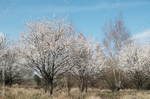 tree, blooming, spring, fruit, cherry, background, beautiful, beauty, bloom, blossom, blue, tree branch, closeup, field, floral, flower, garden, landscape, light, lonely, mirabelle, natural, nature, plant, plum, prune, prunus, scenic, season, sky, springtime, twig, white