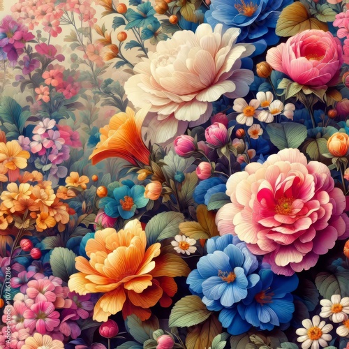Blooming Garden Flowers A colorful illustration of blooming gard