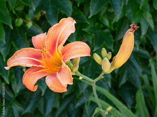 Blooming orange lilies, natural outdoor background in the Czech Republic