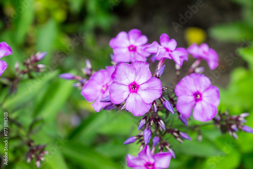Blooming phlox "Magic blue" in the garden. Shallow depth of fied.