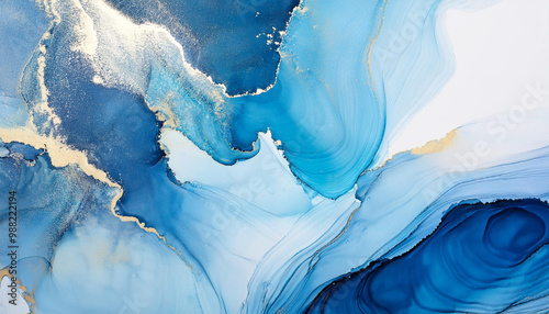 Blue alcohol ink technique. Luxury abstract fluid art painting background.