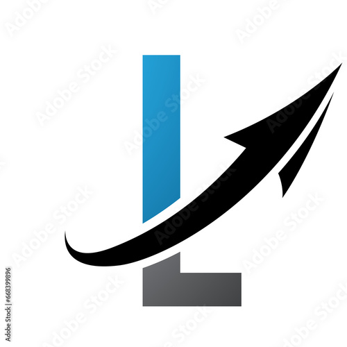 Blue and Black Futuristic Letter L Icon with an Arrow