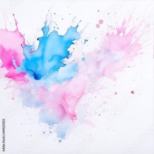 Blue and pink watercolor on a white background. The color splashes on the paper.