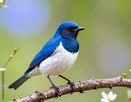 bird, blue, white, perched, tree branch, nature, wildlife, spring, forest, sharpened, detail, feather, wing, closeup, photo, pretty, small, cute, bright, colours, symmetry, blurred, background, springtime, fresh, image, passerine, songbird, fauna
