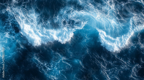 Blue and white ocean wave texture in daylight, abstract aqua and teal water surface with flowing motion, modern background for nature, tranquility, and fluidity themes.
