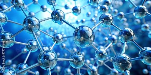 Blue Atoms Connected in a Network, 3D Rendered Molecular Structure, Abstract Science Concept, Science, Chemistry, Atoms