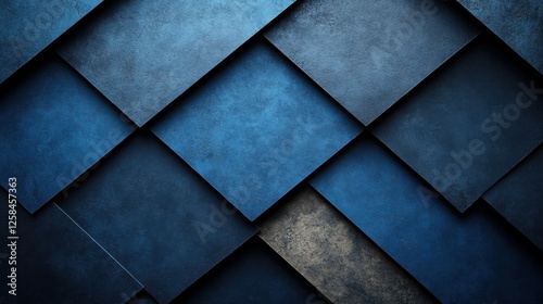 Blue background with symmetrical shapes for design. Banner template with white space in the center for text. Ideal for abstract minimalist wallpaper and contemporary digital media.