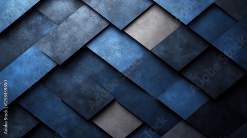 Blue background with tessellating shapes. Banner template with white space in the center for text. Suitable for abstract minimalist wallpaper and contemporary design projects.