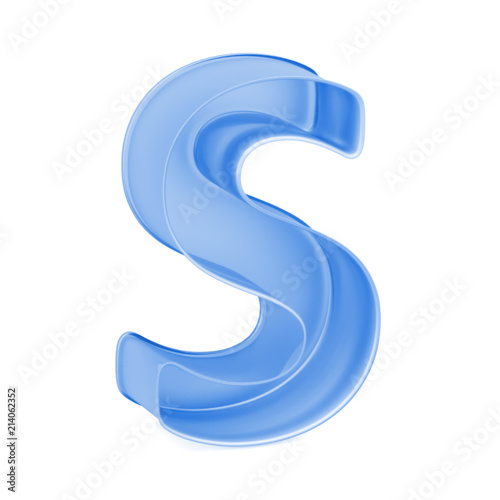 Blue baking cake pan, cookie cutter or toy mold like capital letter S on white background, 3D rendered font image