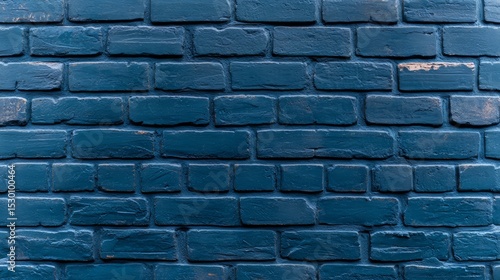 Blue brick wall with a rough texture. The wall is made of bricks and has a blue color