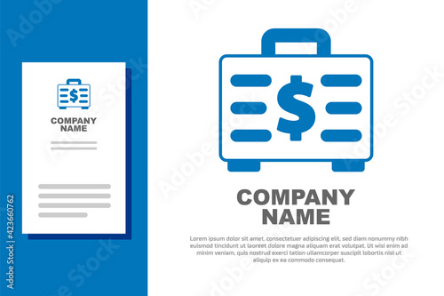 Blue Briefcase and money icon isolated on white background. Business case sign. Business portfolio. Logo design template element. Vector