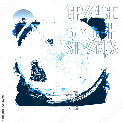 Blue brush stroke and texture. Grunge vector abstract hand - painted element. Underline and border design.