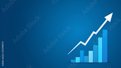 Blue business arrow and stock market graph arrow growing upwards on economic chart icon symbolizing trending growth and financial success. concept as Blue business arrow and stock market graph arrow g