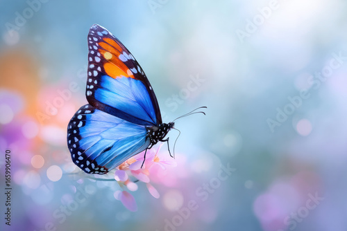 butterfly, blue, wing, delicate, vibrant, colours, nature, soft, background, spring, floating, gentle, dreamy, eco, advertising, insect, animal, closeup, macro, beauty, natural, wildlife, garden, flower, pollinator, bright, bokeh, pastel, light, peaceful, elegant, flying, environment, freshness, summer, colourful, pattern, texture, graceful, serene, magical, fantasy, artistic, soft focus