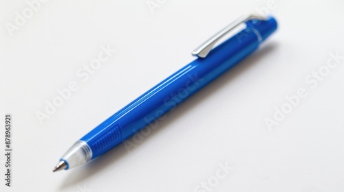 Blue capped ballpoint pen on white background