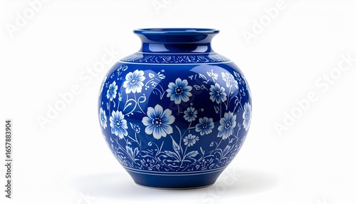 Blue ceramic vase with white floral bands—ornate, timeless, and refined; a visual of heritage, craftsmanship, and decorative elegance.