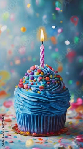cupcake, birthday, celebration, colourful, sprinkle, candle, blue, festive, party, sweet, dessert, baking, confectionery, bright, holiday, cheerful, lit, fun, delicious, treat, frosting, sugar, whipped, cream, decoration, background, festivity, joyful, occasion, deliciously, celebrate, cake, icing, cheer, happy