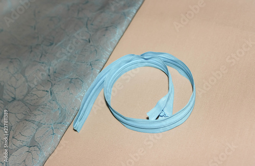 zip, beige, blue, clothes, colours, fabric, fastener, material, ribbon, sew, sewing, stitching, tape, textile