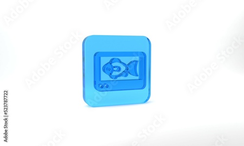 Blue Fish finder echo sounder icon isolated on grey background. Electronic equipment for fishing. Glass square button. 3d illustration 3D render