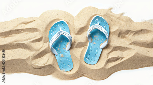 Blue flip flops on sandy beach, perfect for summer relaxation and fun