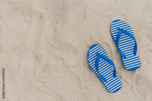 Blue flipflop on beach sand