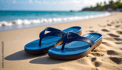 flip-flop, blue, beach, sand, ocean, wave, summer, vacation, sunny, shoe, sandal, travel, shore, water, sea, relaxation, holiday, leisure, tour tourism, sun, day, warm, summer, footwear, pair, relax