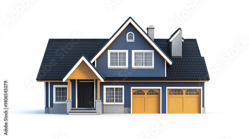house, residential, home, architecture, blue, yellow, garage, entrance, roof, window, chimney, porch, modern, family, building, exterior, design, real estate, property, facades, suburban, structure, dwelling, front yard, siding, gable, step