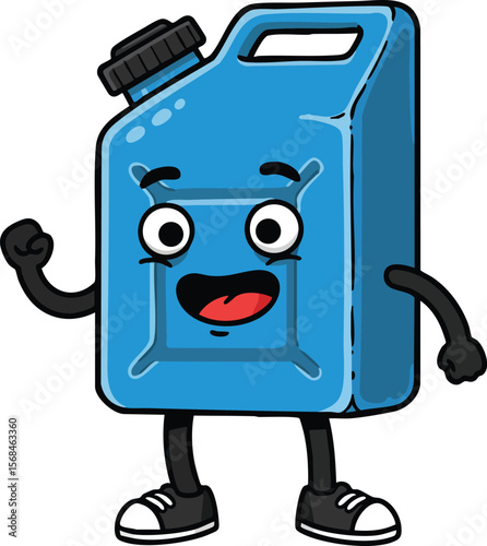 Blue jerry can character with expressive face and sneakers vector cartoon design for fun and playful illustrations