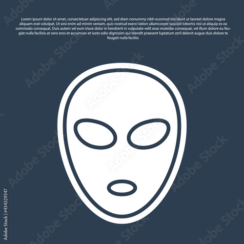 Blue line Alien icon isolated on blue background. Extraterrestrial alien face or head symbol. Vector