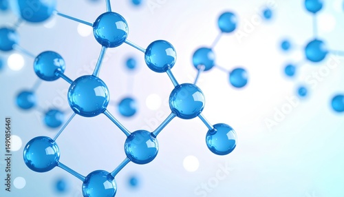 Blue molecular structures connected by bonds, representing a scientific concept on a light blurred background