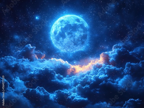 moon, night, sky, cloud, star, blue, glow, dark, cosmic, celestial, space, universe, galaxy, light, full, mystical, magical, fantasy, dream, serene, peaceful, calm, beauty, nature, artwork, digital, art, illustration, background, wallpaper, scene, vibrant, aethereal, mysterious, bright, romantic, wonder, awe, power, energy, calmness, atmosphere, immensity, nocturnal