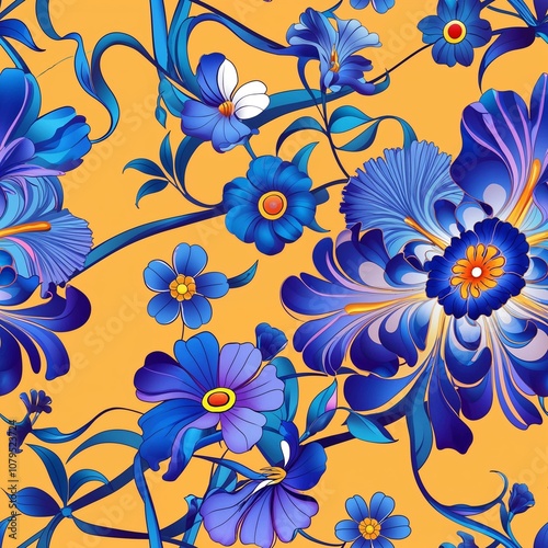 blue, morning, glory, flower, pattern, design, illustration, plain, background, seamless, wallpaper, print, floral, vector, spring, nature, flower, leaf, decoration, art, plant, summer, blossom, ornament, texture, colours, beauty, background, element, decor