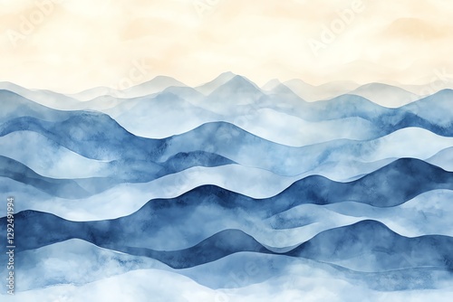 mountain, range, watercolor, landscape, painting, blue, hill, sky, art, artwork, nature, scene, scenic, view, image, illustration, design, decor, home, wall, canvas, poster, minimal, abstract, modern, peaceful, tranquil, serene, calm, relaxing, background, texture, pale, wave, soft, colours, laundered, gradient