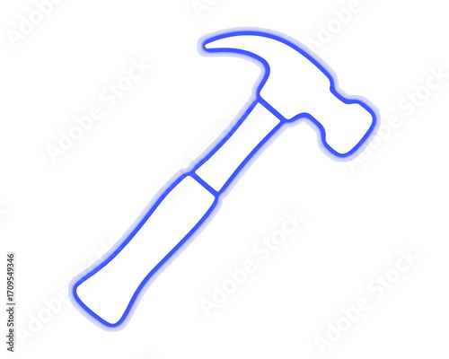 hammer, tool, neon, blue, glow, repair, carpenter, build, work, bricolage, mechanic, construction, equipment, fix, craft, service, strike, industry, icon, bright, aglow, outline, symbol, design, editable, object, men at work, nail, element, transparent, hardware, setting, digital, effect, hammering