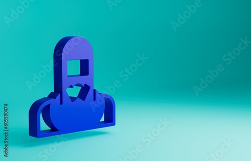 Blue Nuclear power plant worker wearing protective clothing icon isolated on blue background. Nuclear reactor worker. Minimalism concept. 3D render illustration