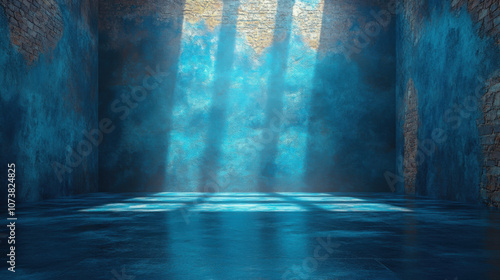Blue quared background, Detailed animated with light coming from the back wall.