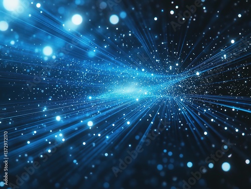 Blue radial light rays and light points, representing digital expansion and technological innovation.