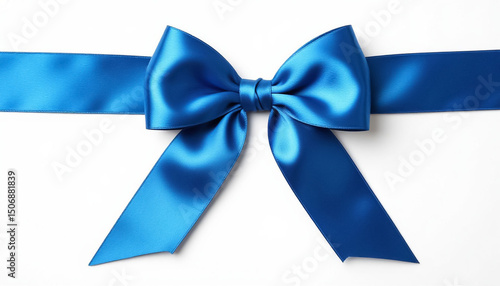 Blue ribbon with a bow on a white isolated background. Generated by AI.